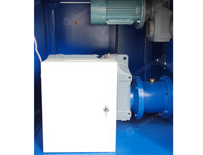 倾斜投料斗一便于投 EPS 物料,二物料不会在破碎过程中将物料推出料斗。发泡聚苯乙烯的热熔回收 机用破碎刀,平行放置的刀轴,刀轴上对称地固定有刀片,刀轴上的刀片相互错位排列,并且每根 刀轴上的相邻刀片以相同方向错开一定角度排列于刀轴上。物料破碎后用电机带螺杆压出成块。
