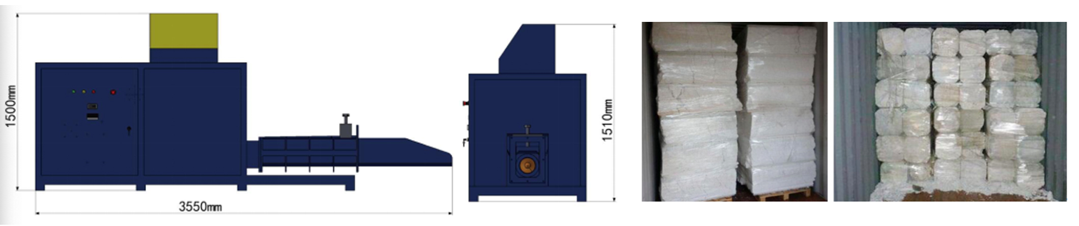 CF-CP150是由 韦德1946机械为小型规模的回收中心或者超市等加工商户设计的小型号的泡沫压缩机,主要适用于聚苯乙烯泡沫盒子的包装的压缩,减少体积,改善环境。
