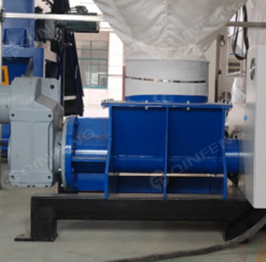 物料由高速旋转的螺杆输送到加热机筒。 主机螺杆将物料输送并加热至熔化状态,然后将其挤出,液压刀片将其切割成块,便于储存和运输。